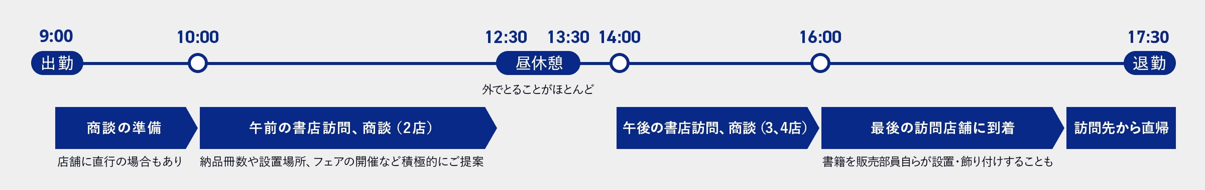 仕事をする上で大切にしていることは「ひと商談ひと笑い」。気難しそうに見える相手ほど笑顔になってもらえるよう、商談前には必ず話のネタを用意するようにしています。書店員の方と雑談を交えながら商談を進めることで、お互いに楽しく、気持ちよく仕事ができるよう心がけています。